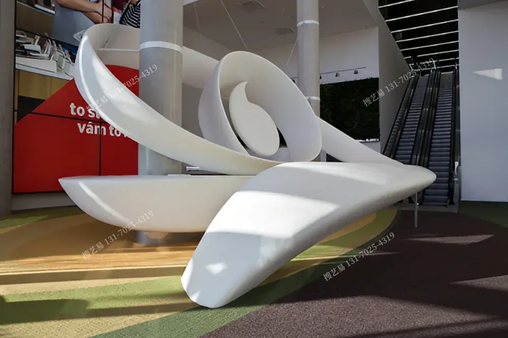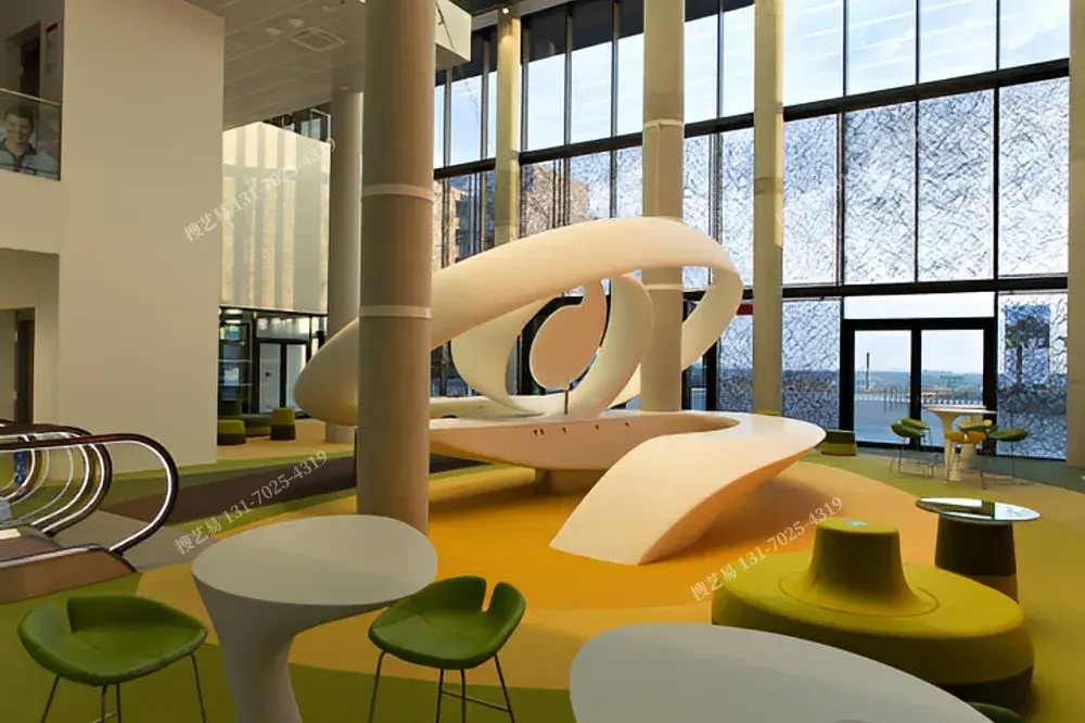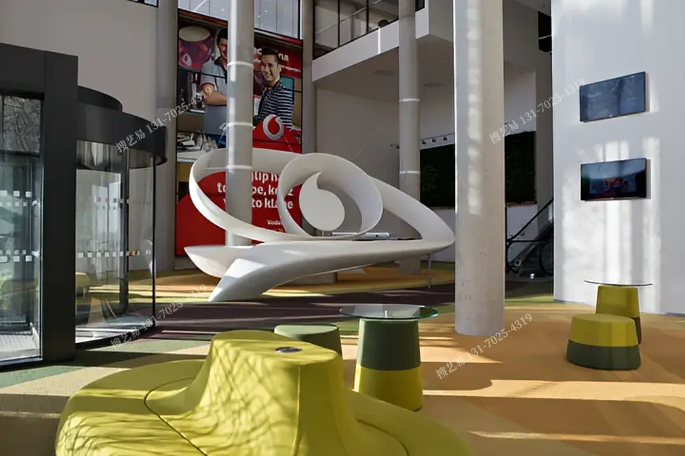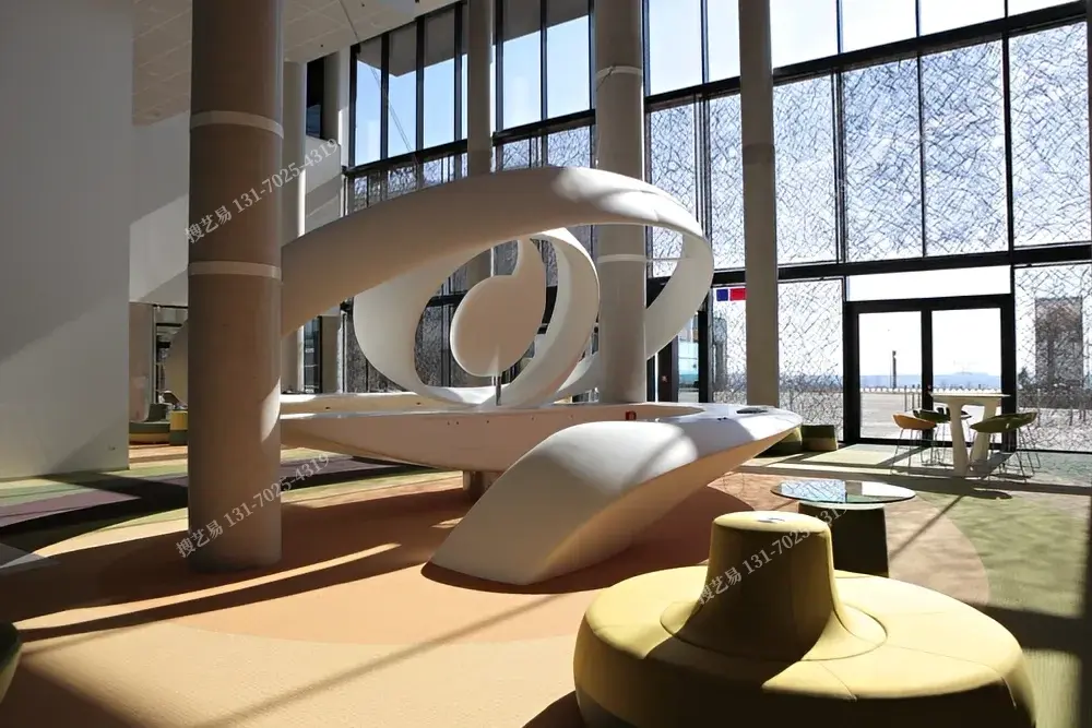 在酒店大堂、商业休息区或高端会所的休息大厅,接待台不仅是服务枢纽,更是空间气质的核心载体。搜艺易「休息大厅艺术接待台」以自然流动形态为设计灵感,采用 GRC(玻璃纤维增强混凝土)材质打造有机曲面造型,将工业材料的强度与艺术设计的柔和感巧妙融合。主体经 12 道手工塑形工艺成型,表面覆盖纳米级亲肤涂层,触感温润如天然石材,常规尺寸为长 4000mm× 高 1100mm× 深 900mm,支持 ±25% 的尺寸与弧度定制。