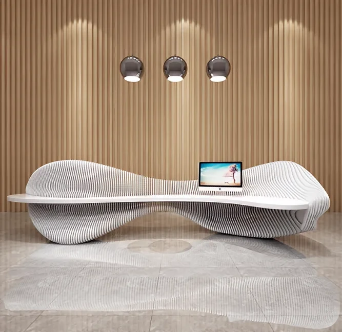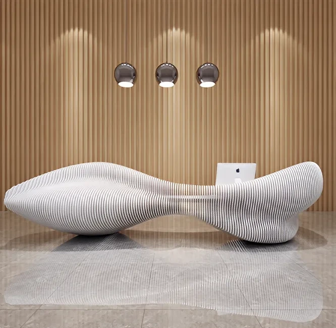 在写字楼大堂或高端会所的设计中,许多业主都曾遇到这样的困扰:市面上的成品接待台要么造型笨重缺乏灵动感,要么材质廉价难以匹配空间格调,好不容易看中的设计方案,却因工艺限制无法实现细节还原。某金融公司负责人王女士就曾吐槽:"我们想要的是兼具力量感与设计感的前台,找了三家供应商都说弧形金属拼接做不了,最后只能退而求其次。"