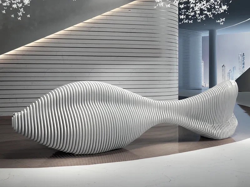 在商业空间的打造中,接待前台不仅是功能性的导览枢纽,更是企业形象的第一展示面。搜艺易推出的「白鲨创意接待前台」,以海洋霸主白鲨为设计灵感,将流线型的力量感与优雅气质融入空间载体。