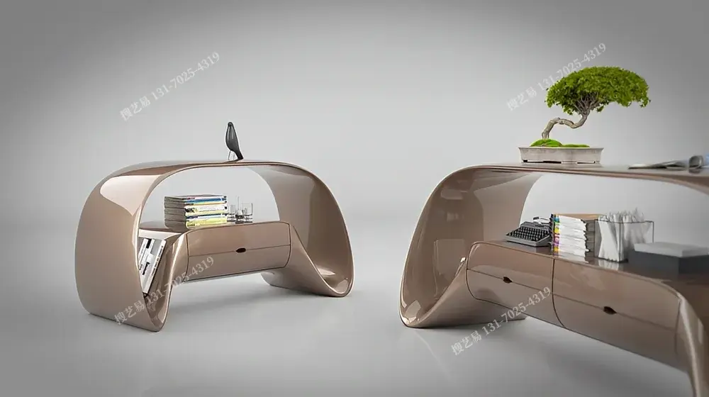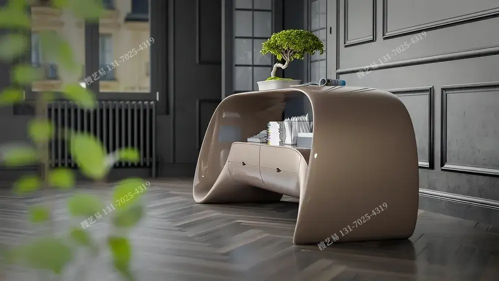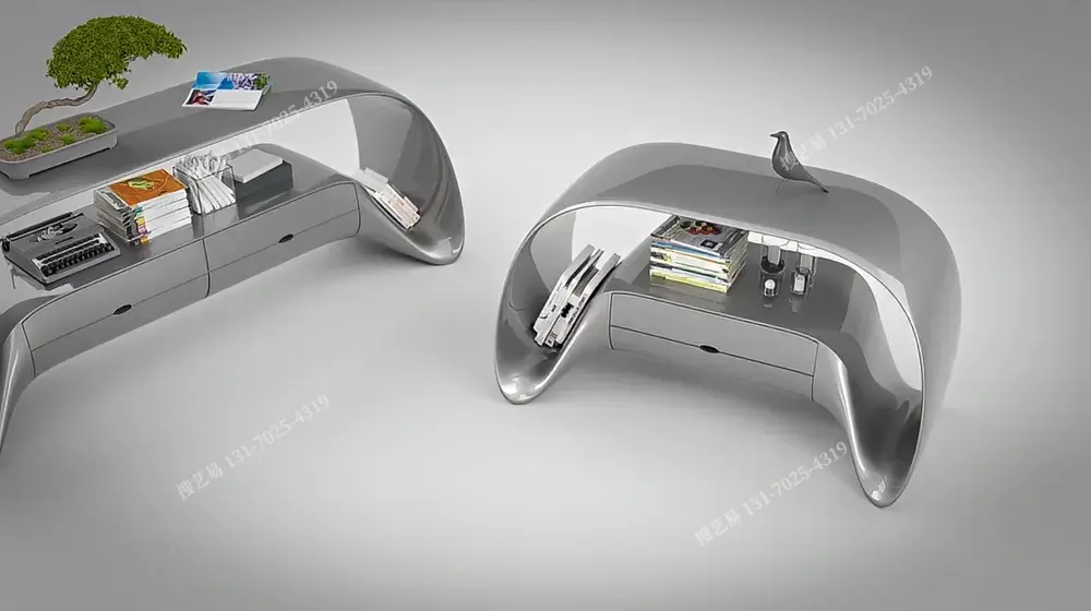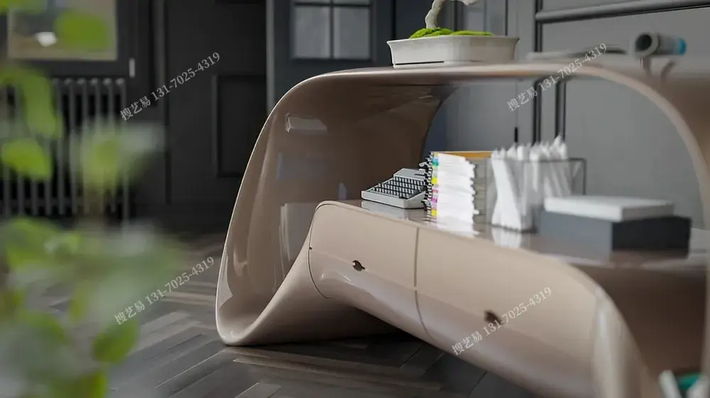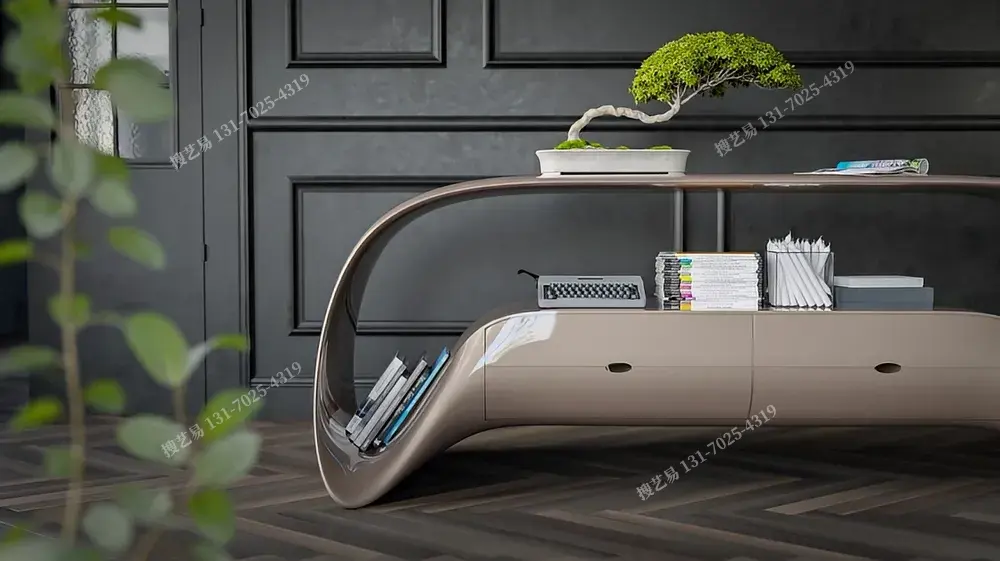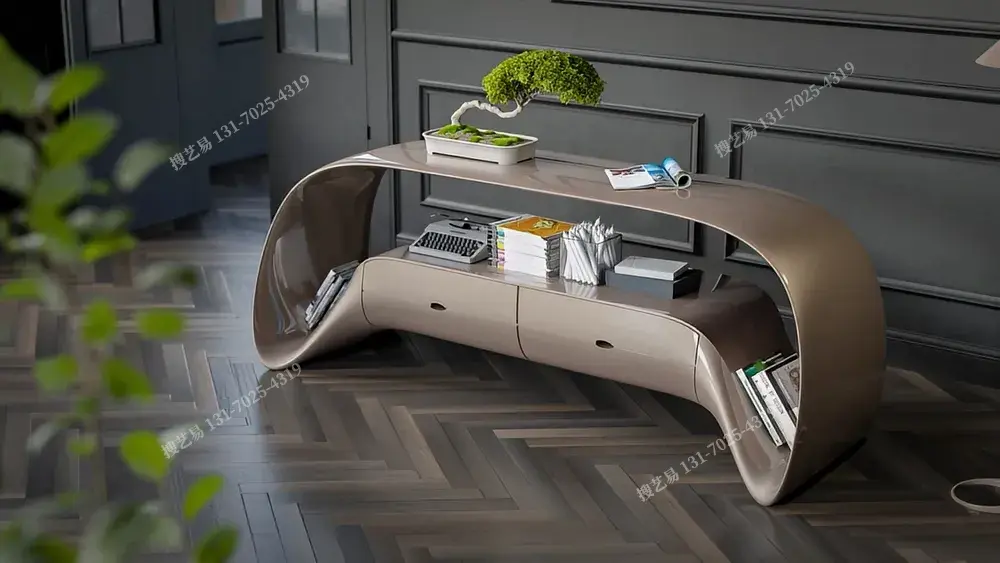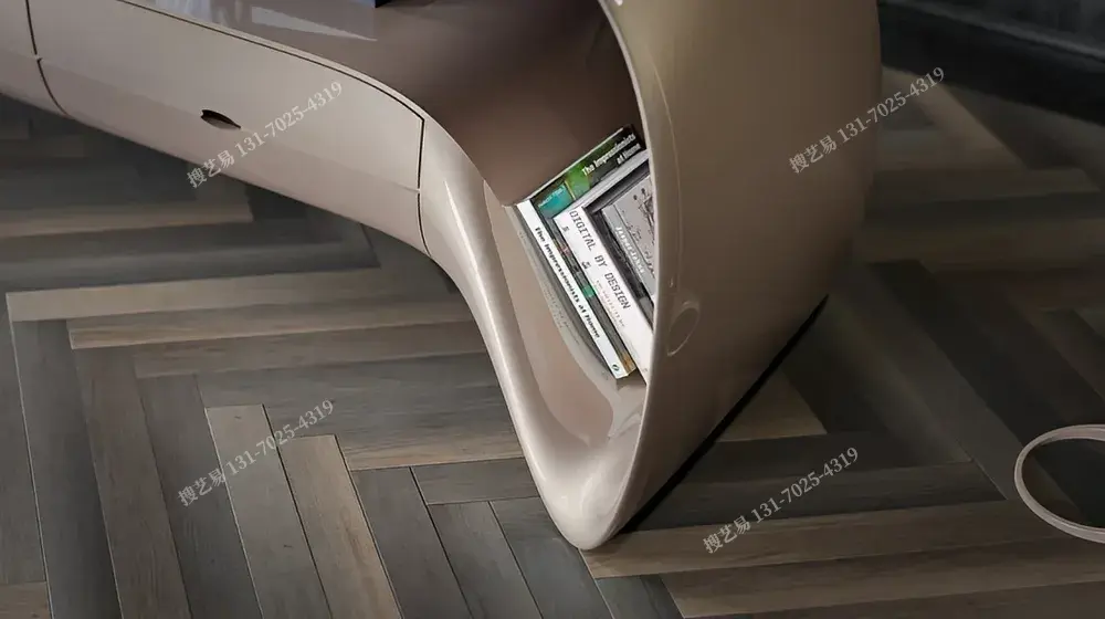 曲面流体艺术边柜以液态金属般的曲面打破柜体刻板,融合开放式陈列 + 抽屉收纳双区功能:上层适配绿植摆件,中层展陈书籍装饰,下层藏纳杂物,实用与艺术共生。高光复合材质温润匀净,适配现代极简、侘寂风等高端空间。搜艺易依托纯手工曲面打磨 + 全维度定制(支持曲面弧度、尺寸比例、配色及功能模块调整),破解 “设计同质化、工艺粗糙” 痛点,让边柜从收纳载体进阶为空间艺术符号,满足设计师、豪宅业主的独特审美需求。
